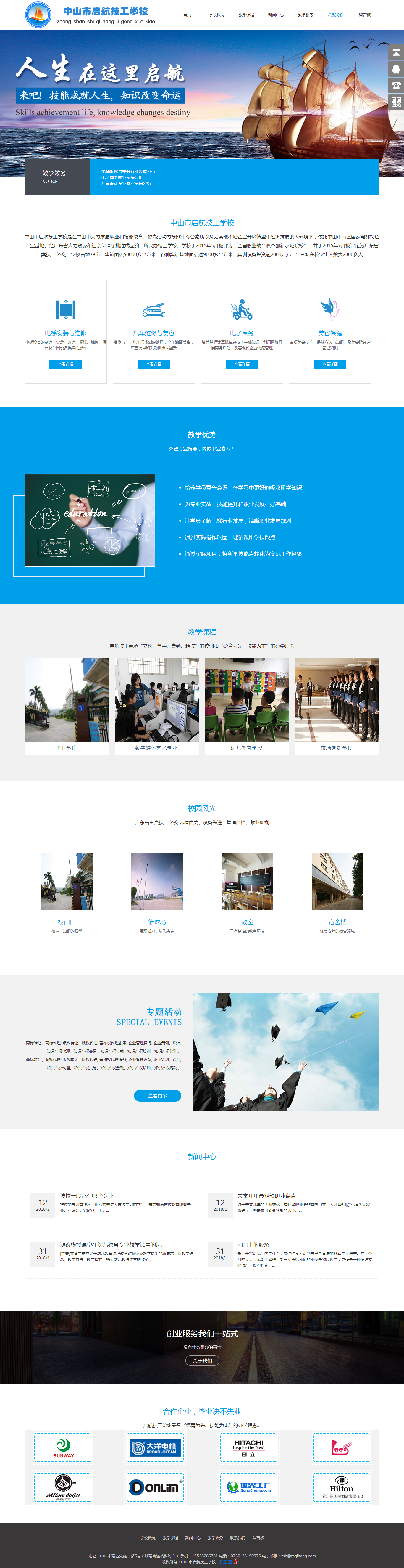 中山市啟航技工學(xué)校是在中山市大力發(fā)展職業(yè)和技能教育、提高勞動力技能和綜合素質(zhì)以及為實現(xiàn)本地企業(yè)升級轉(zhuǎn)型和經(jīng)濟發(fā)展的大環(huán)境下,依托中山市南區(qū)國家電梯特色產(chǎn)業(yè)基地、經(jīng)廣東省人力資源和社會保障廳批準(zhǔn)成立的一所民辦技工學(xué)校。學(xué)校于2015年5月被評為“全國職業(yè)教育改革創(chuàng)新示范院?!保⒂?015年7月被評定為廣東省一類技工學(xué)校。